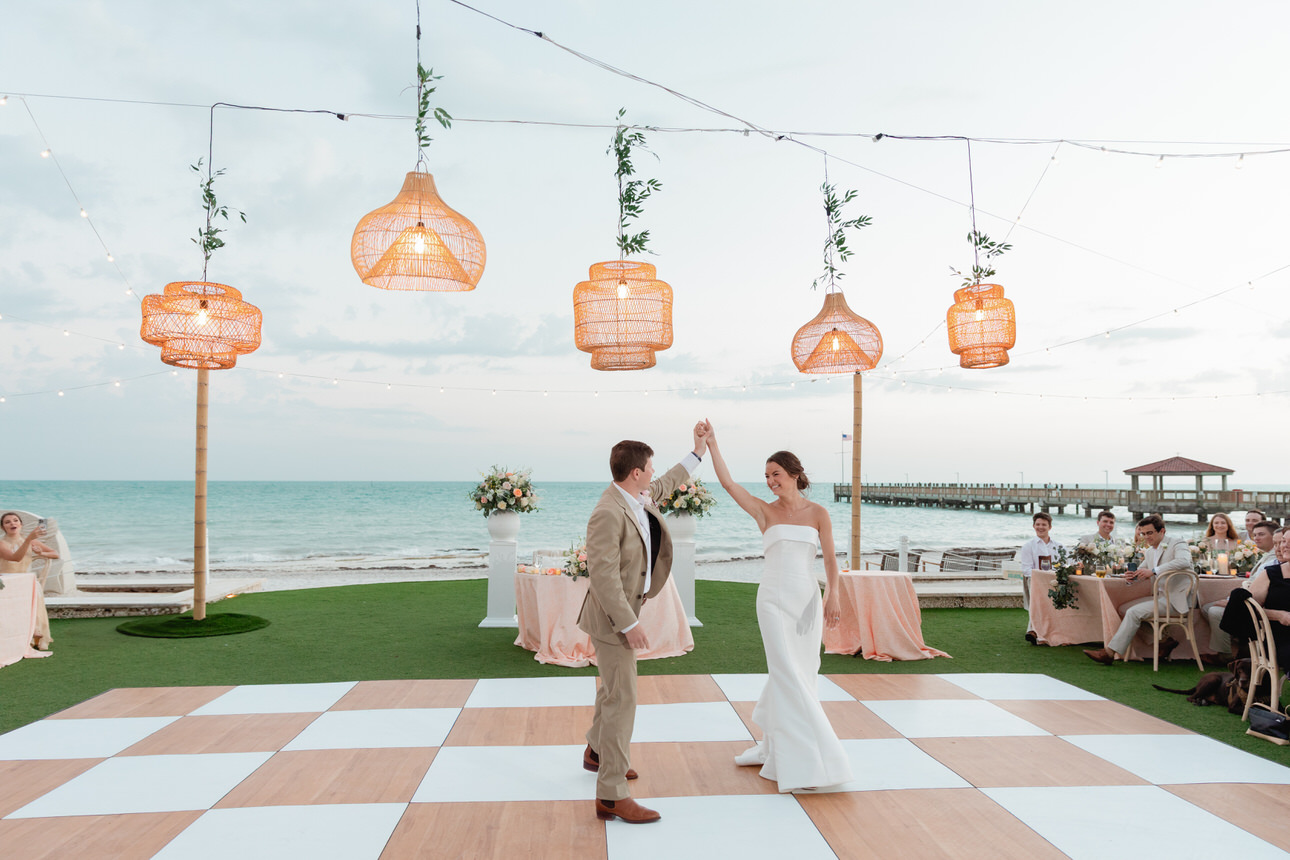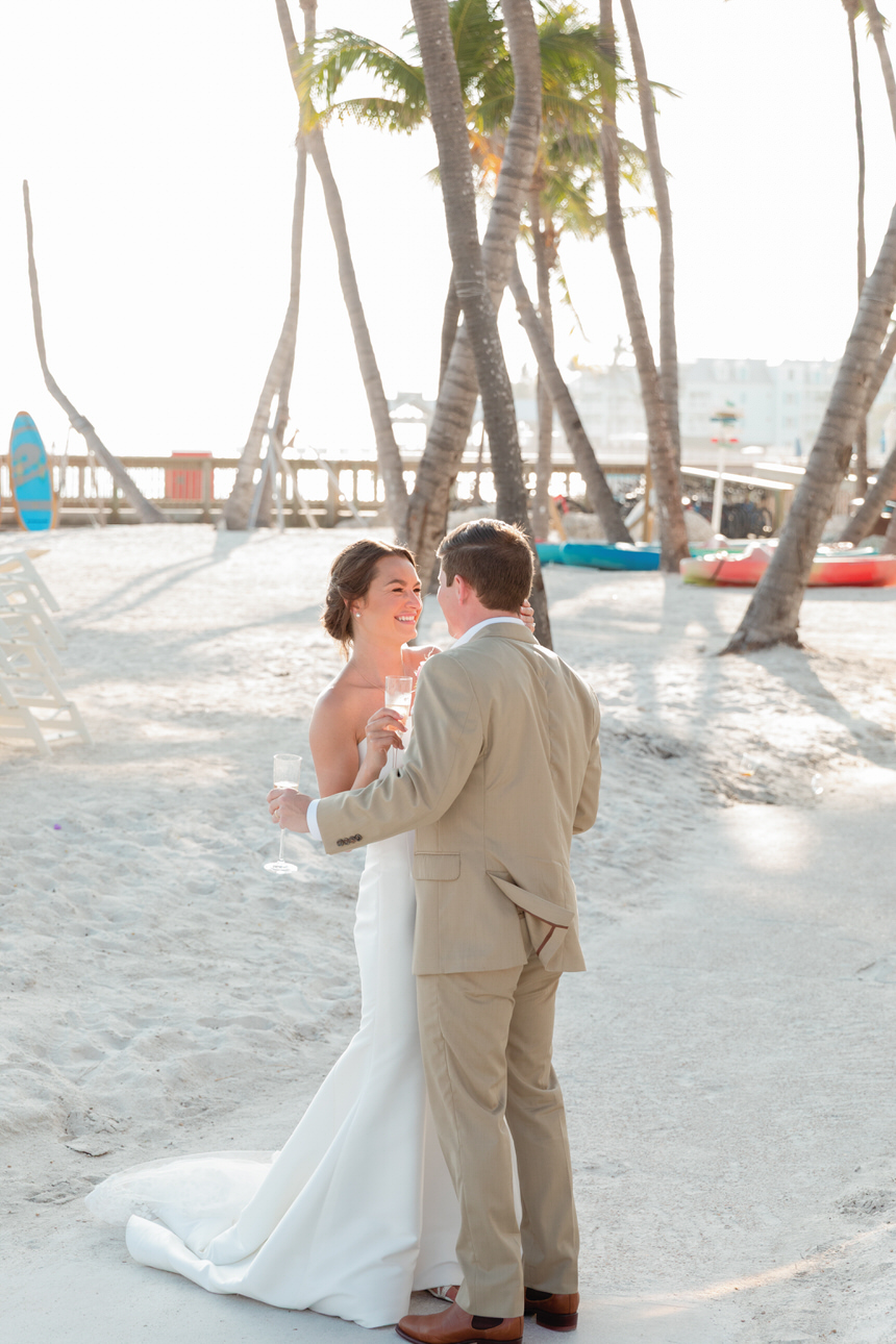 Their wedding day featured a late afternoon ceremony overlooking the ocean, timed perfectly with the Key West sunset, followed by an unbelievably fun reception on the iconic checkerboard dance floor. The entire weekend was beautifully planned by Julie of Simply You Events, with lush florals by Milan Events and flawless hair and makeup by Marie Pierre. As a Casa Marina Key West wedding photographer who has photographed weddings throughout the Keys — from Casa Marina to Little Palm Island — it’s always a joy to capture these incredible venues and the stunning sunsets that make destination weddings here so special.