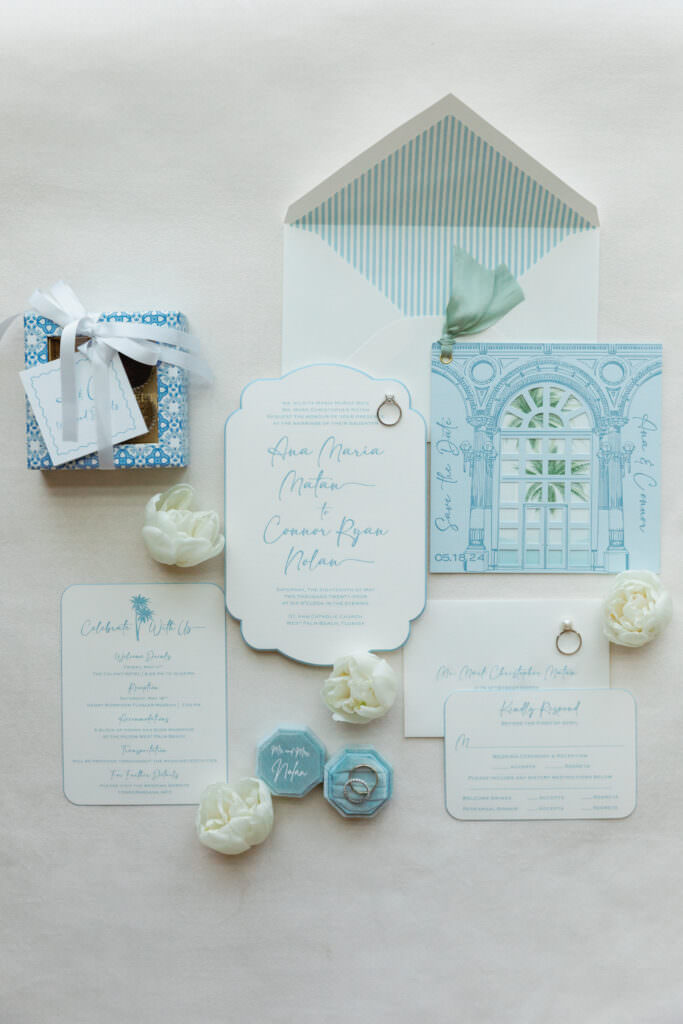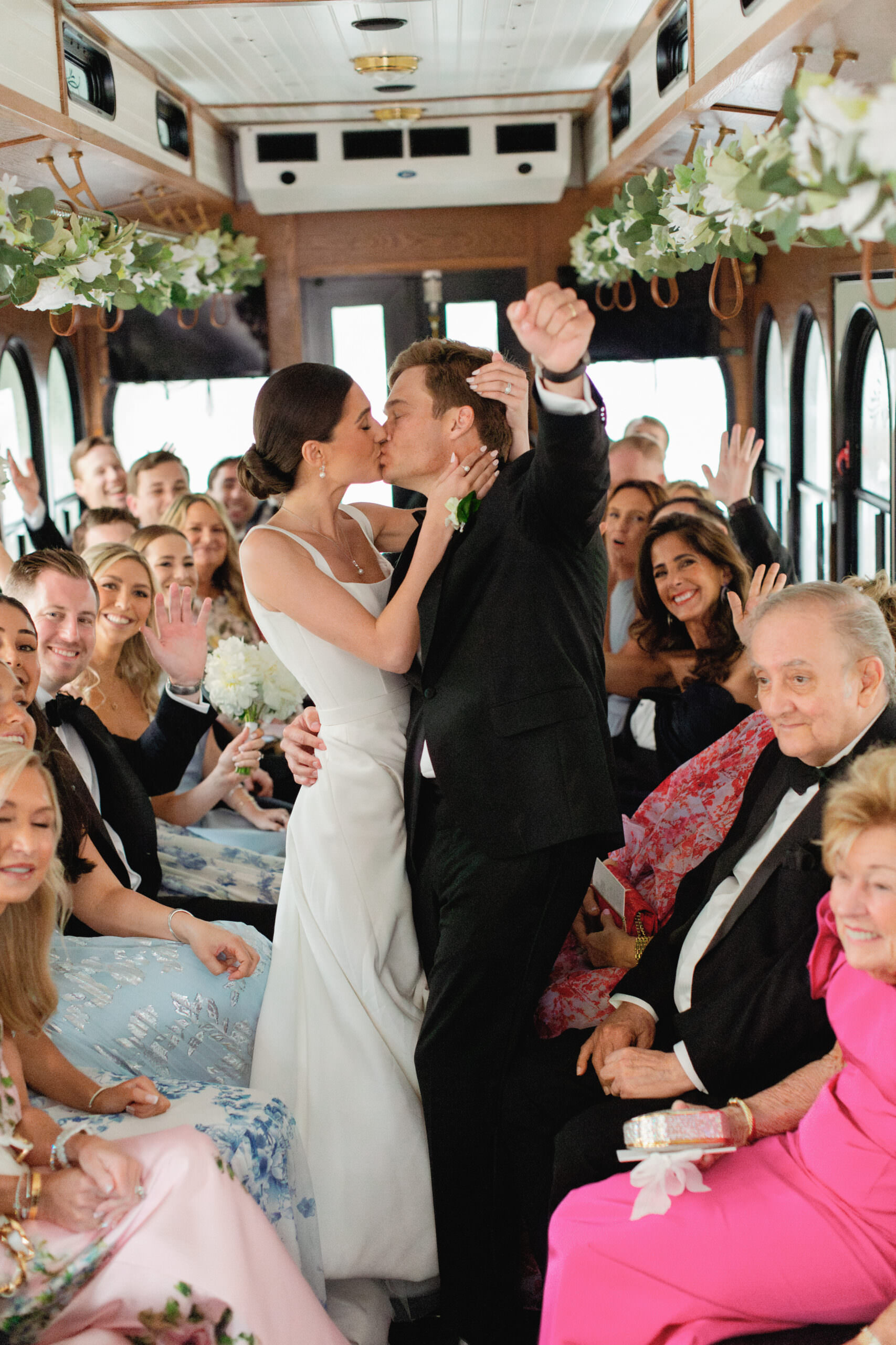 This Palm Beach wedding flowed through some of the island’s most iconic locations. St. Ann’s Church offered a timeless, intimate place to exchange vows, while the ride on Molly’s Trolleys added a playful and celebratory transition through town. The Flagler brought history and romance together, creating a beautiful setting for dinner and dancing.