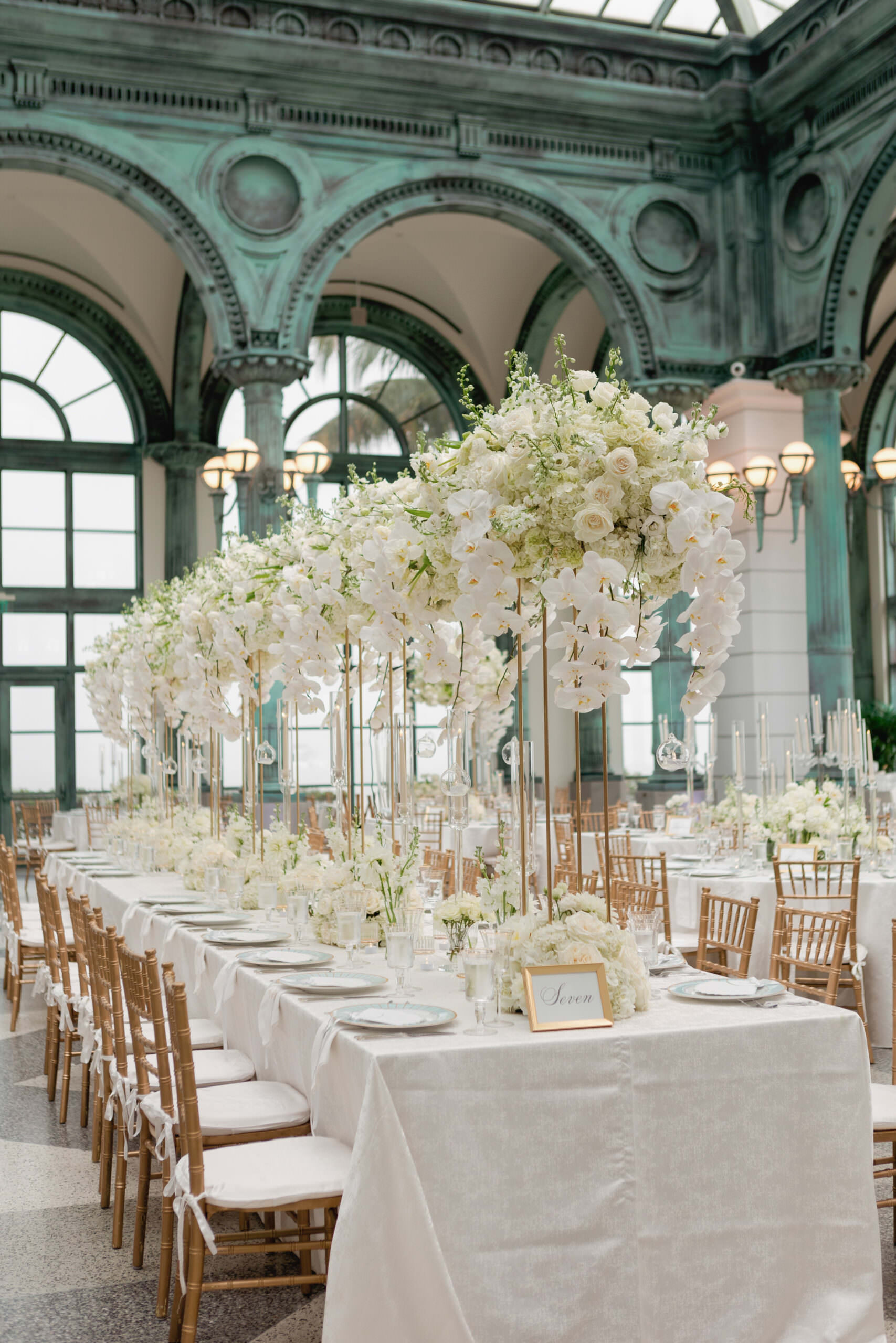 This Palm Beach wedding flowed through some of the island’s most iconic locations. St. Ann’s Church offered a timeless, intimate place to exchange vows, while the ride on Molly’s Trolleys added a playful and celebratory transition through town. The Flagler Pier brought history and romance together, creating a beautiful setting for dinner and dancing.