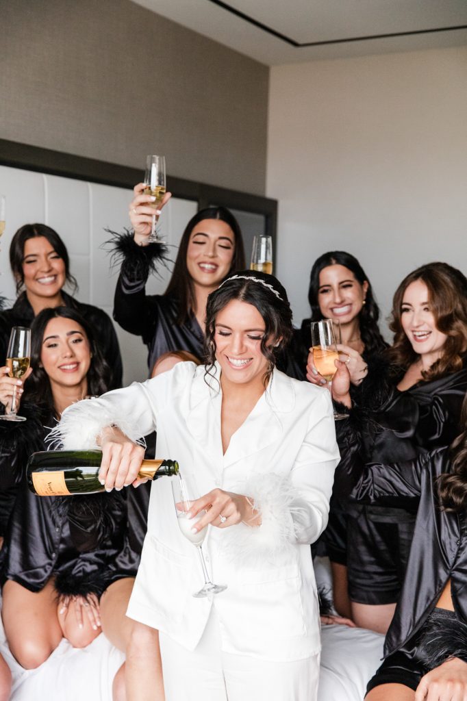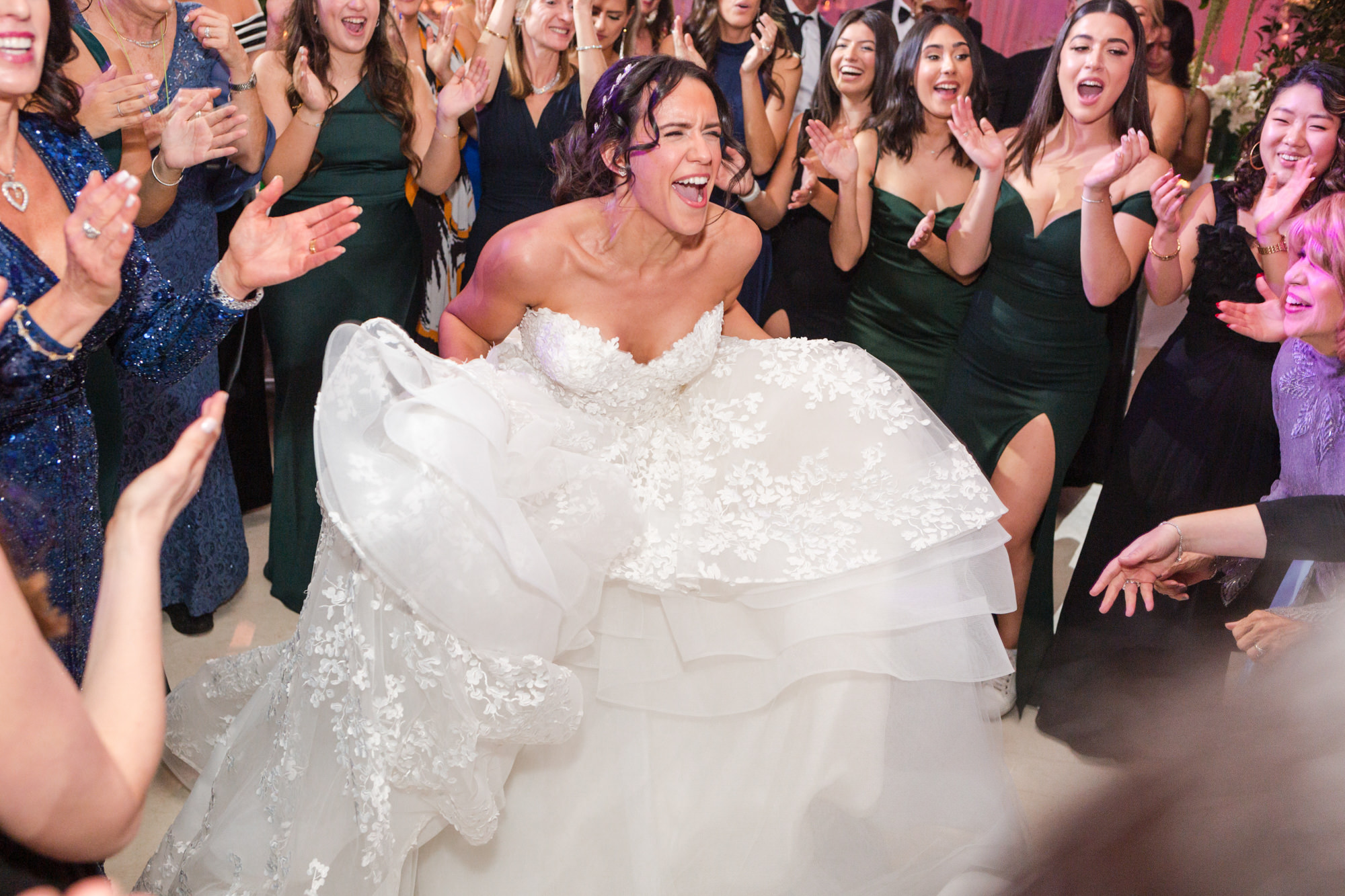 The bride is cheered on by her bridesmaids before the bride and grooms first dance.
