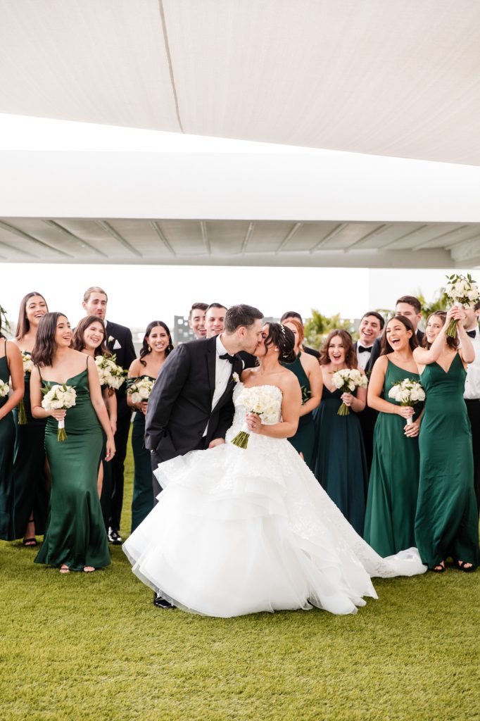 After capturing some gorgeous natural photos during the bride and groom first look, the rest of the groomsmen then see the bride in her wedding dress.