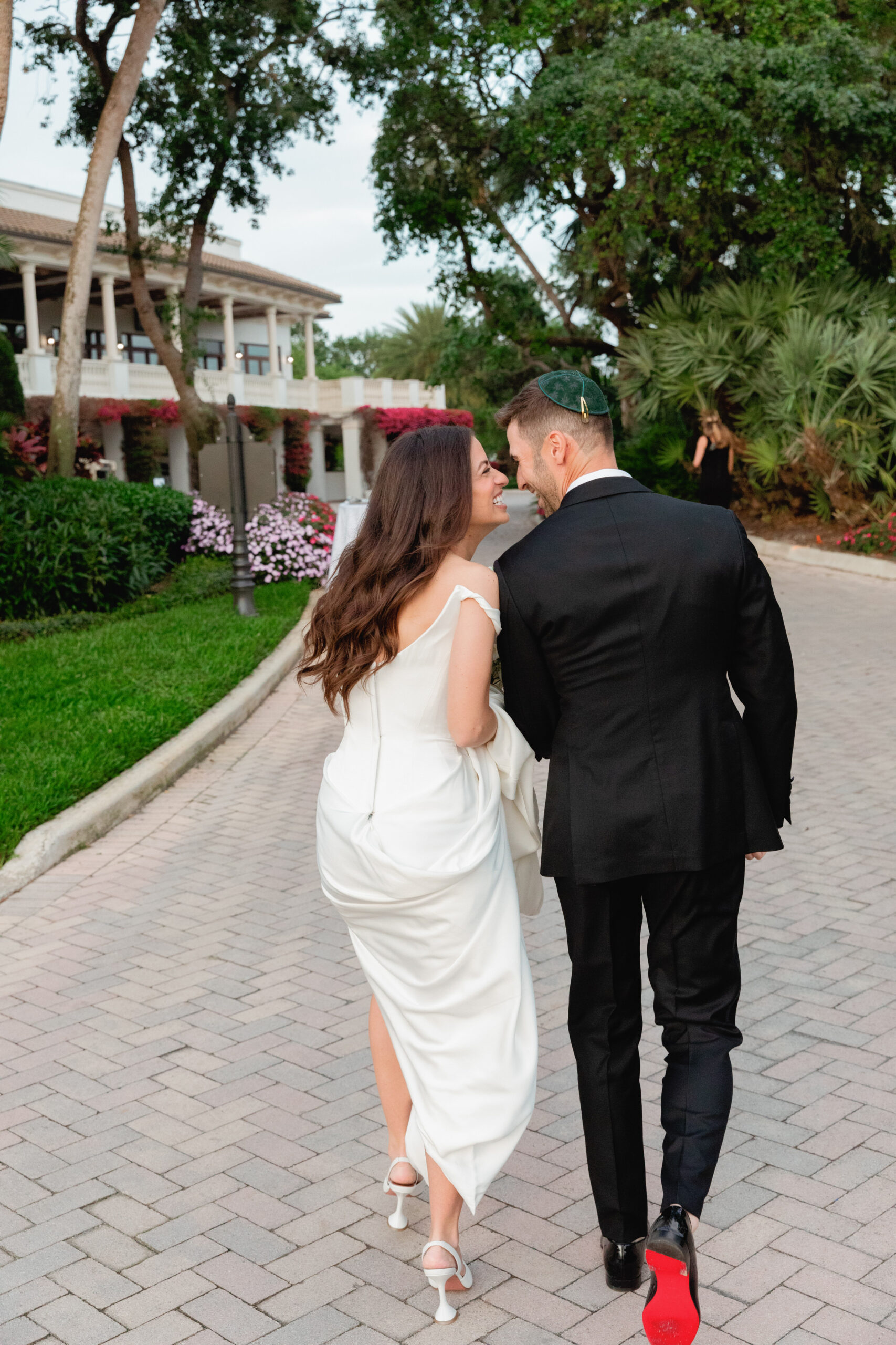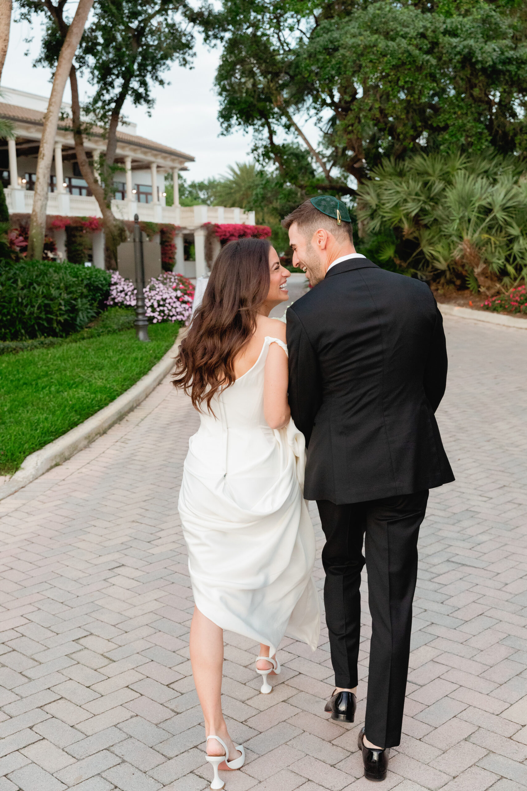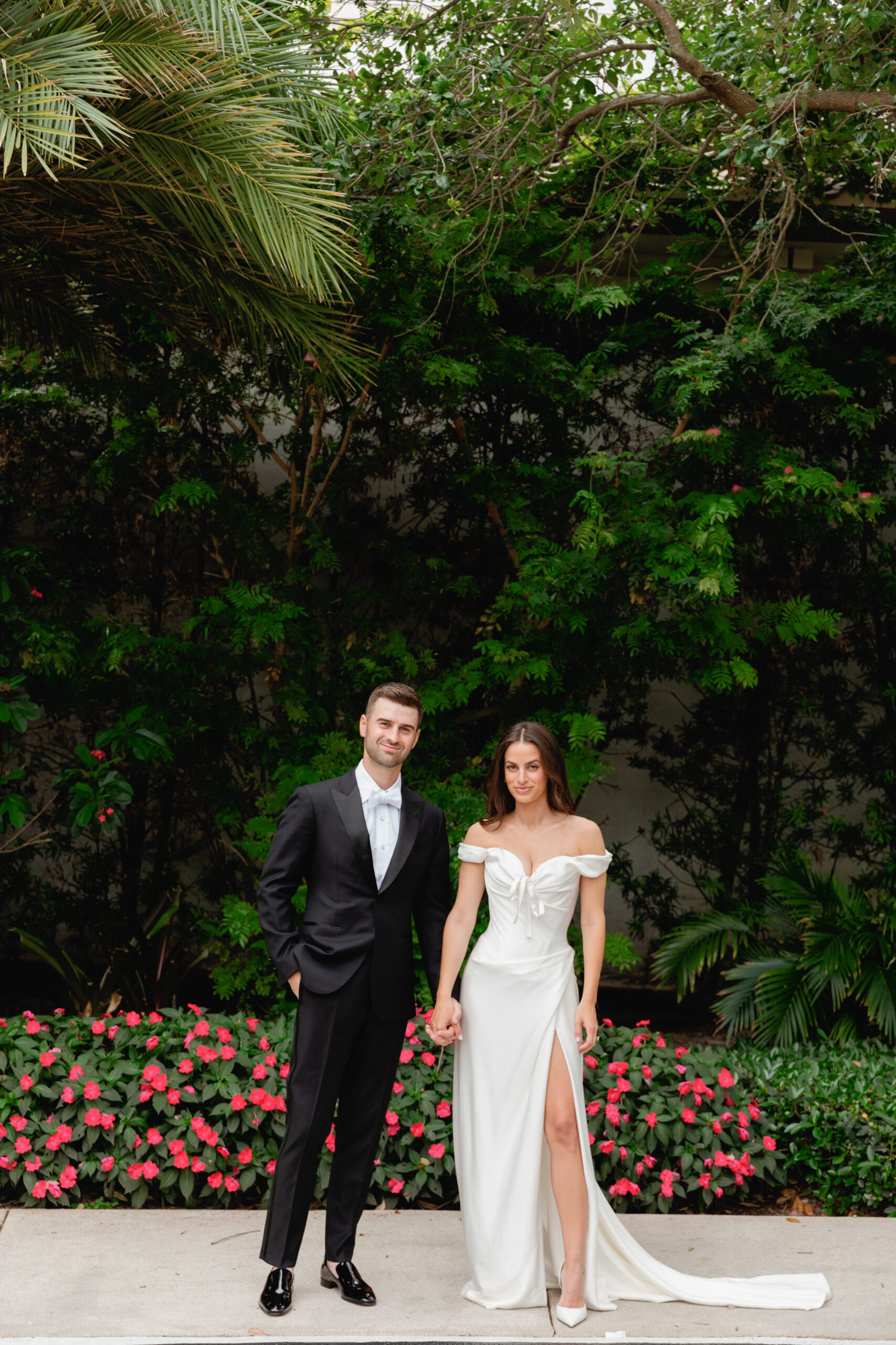 • A bride and her bridesmaids, dress in all black, during their wedding in Boca Raton.