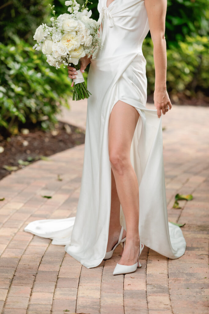 • Bride and groom with a classic blue rolls royce pose for a portrait in front of Epiphany Church after their wedding ceremony.Kimberly + Robert // Biltmore Hotel