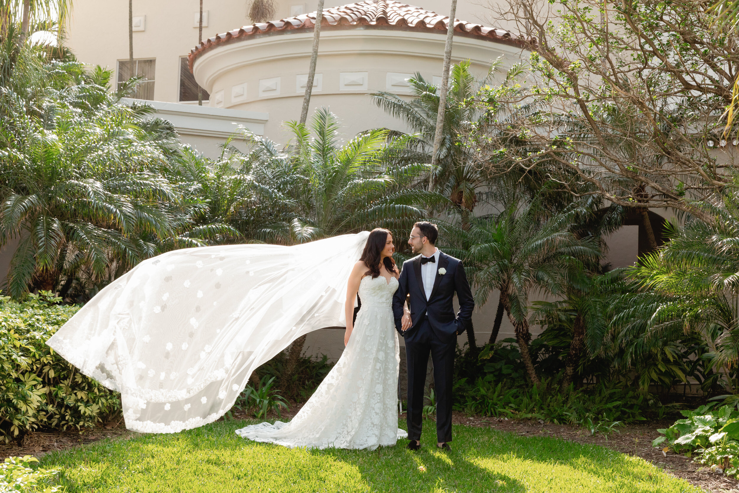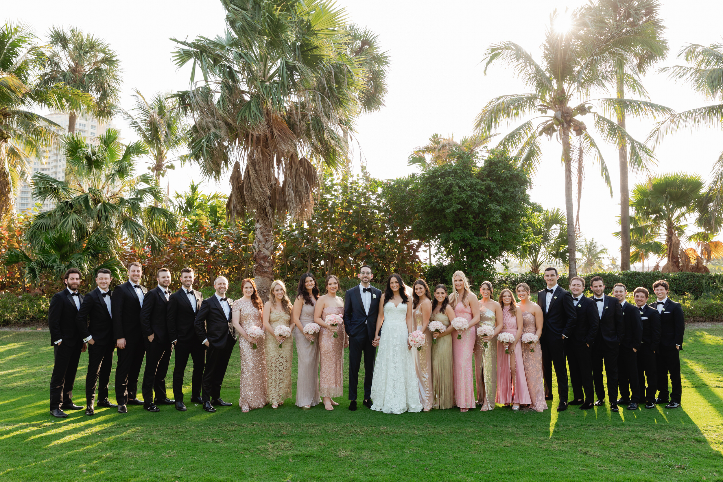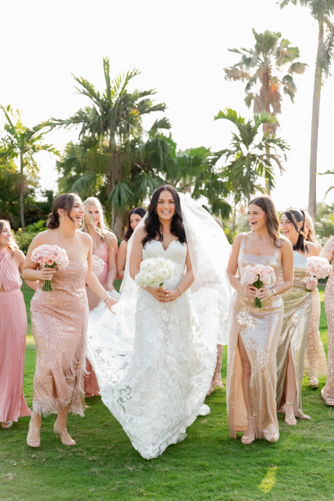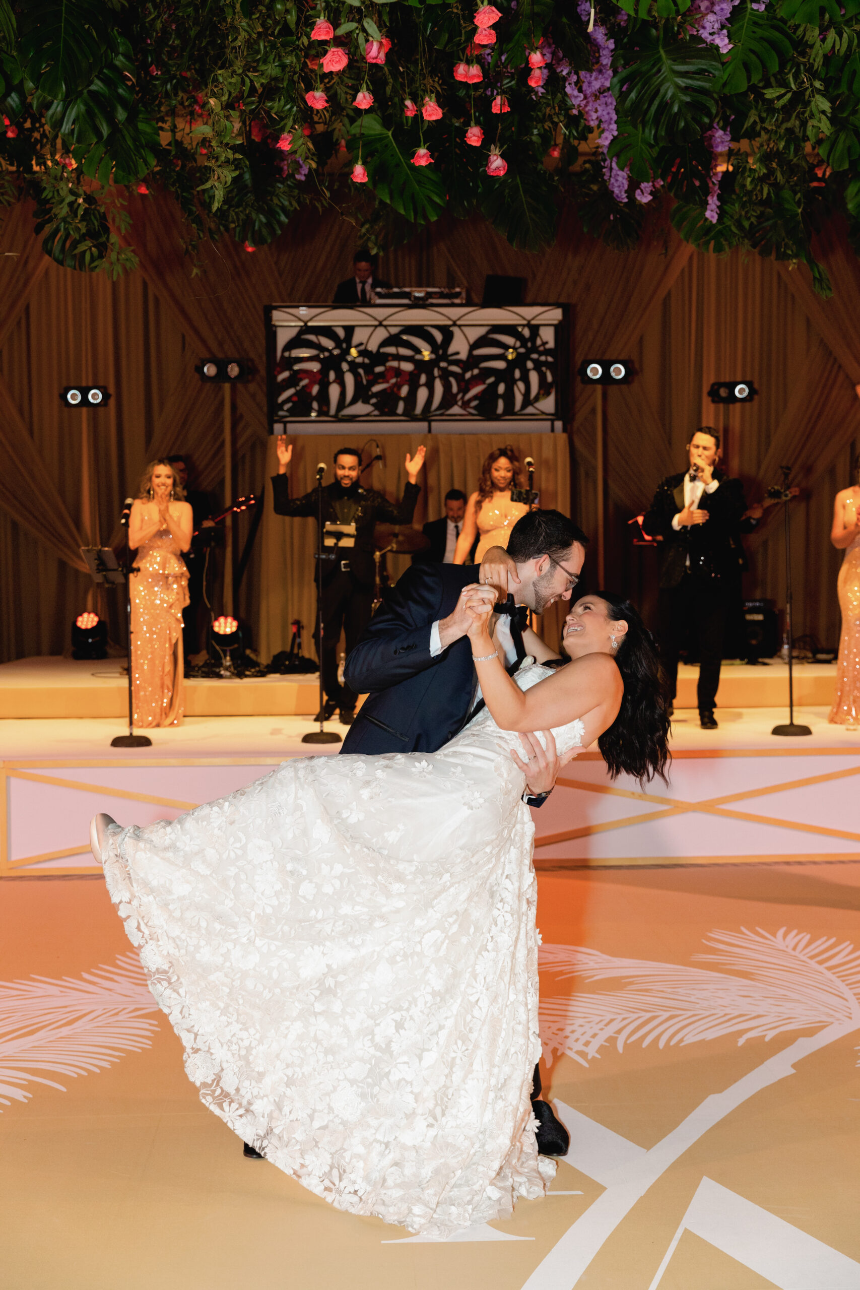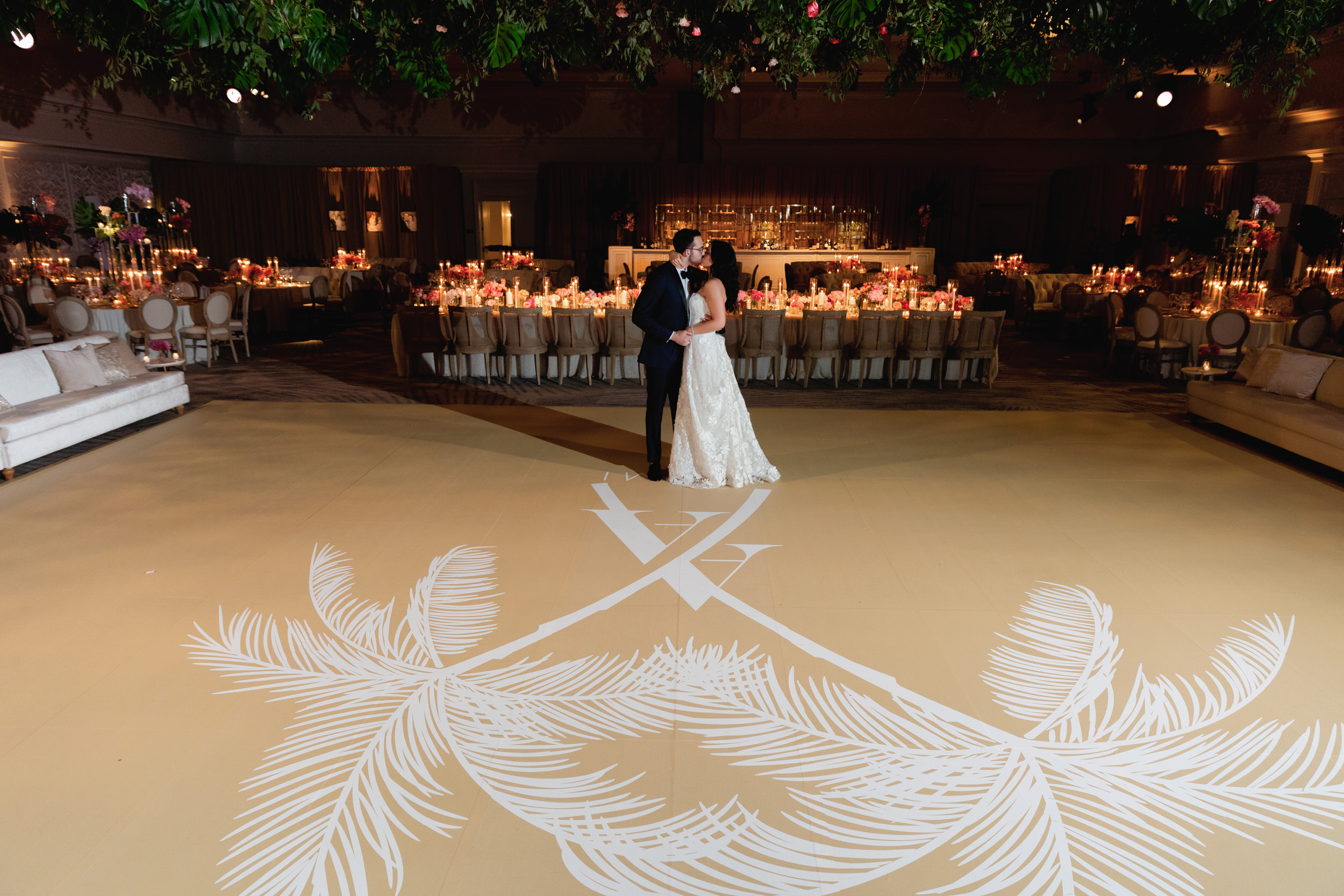 Inside the ballroom, guests were surrounded by a lush, tropical design that felt bold, elegant, and completely unforgettable. Tantawan Bloom outdid themselves all weekend long, from the welcome dinner to the pool party and every detail in between. The day was beautifully planned by Sense Solutions, with the bride wearing a stunning Sareh Nouri gown and flawless hair and makeup by Tashy Marie. Photographed by a JW Turnberry Aventura wedding photographer, this gallery captures dramatic light, incredible design, and the joyful energy that filled every part of Ali and Alex’s celebration.