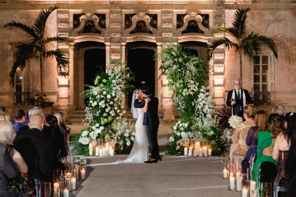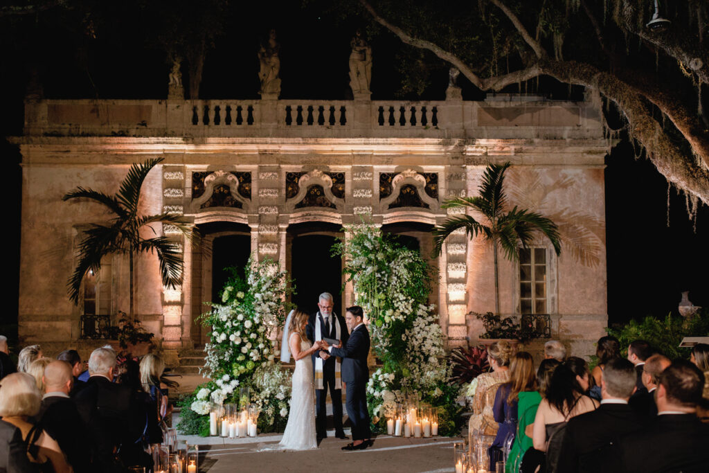 Photographed by a Vizcaya Museum wedding photographer, this gallery captures real moments, glowing light, and timeless design. From the candlelit ceremony to the elegant reception, every part of the night felt romantic and unforgettable.