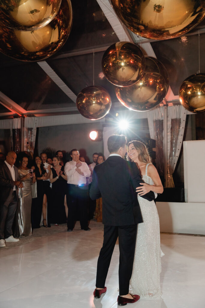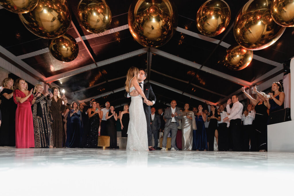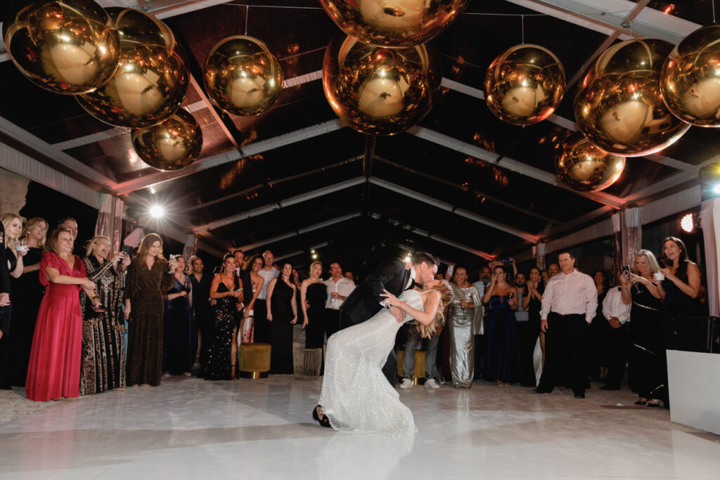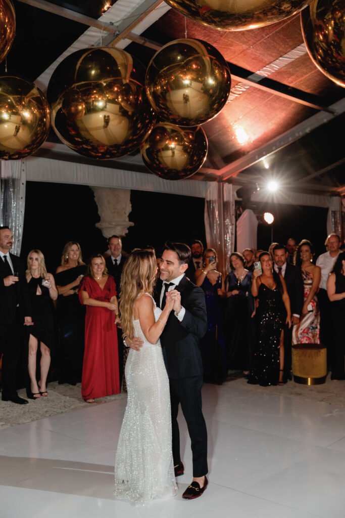 The bride wore a stunning gown by Galia Lahav, which fit perfectly with the classic style of Vizcaya. BSocial by Paula Jackson planned every detail, while lush floral designs by Ines Naftali transformed the space. Guests enjoyed a beautiful dining experience by Bill Hansen Catering, followed by a lively evening of celebration.