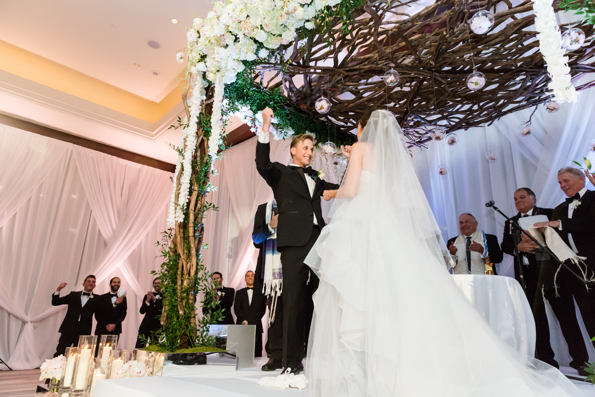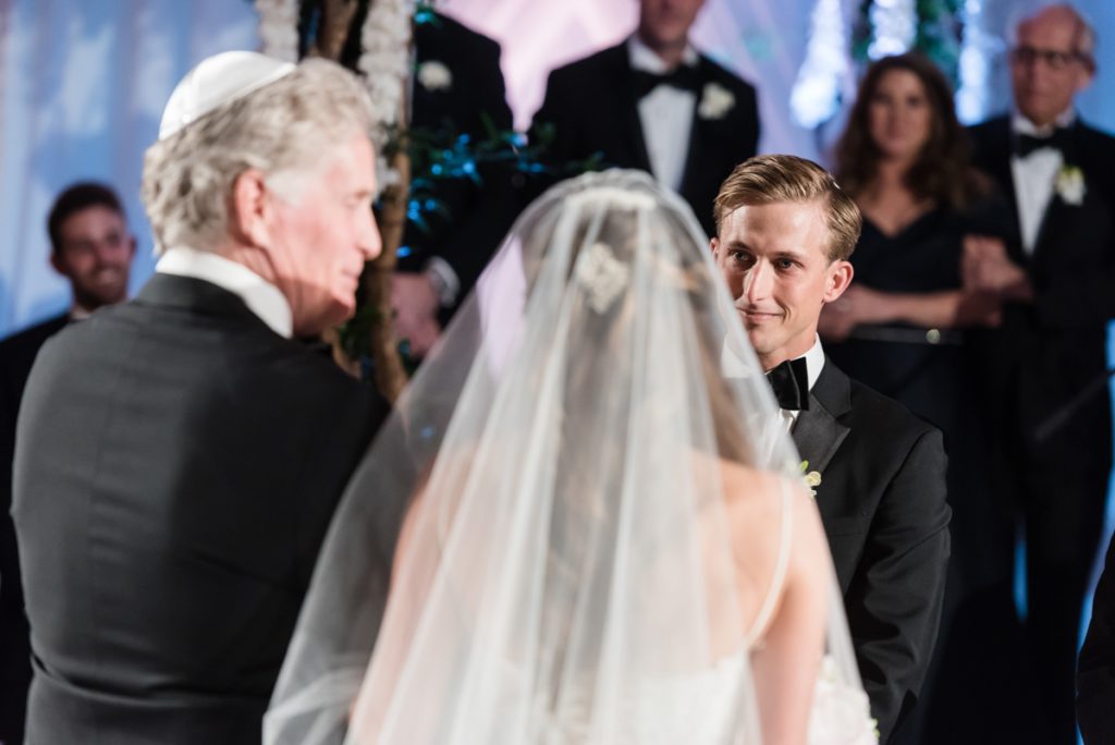 Rachel and Nick envisioned their wedding day first look in a more tradition way, and skipped a reveal. We took all their family portraits a different times Setting up in the same location at the Mandarin Oriental, we were able to create continuity in for the formal portraits. Then they signed their ketubah apart, in anticipation of seeing each other for the first time under the chuppah. For more ideas on how to maximize your wedding photography portrait time, should you decide not to have a reveal, read my suggestions at the end of this post!