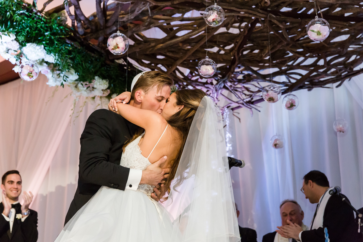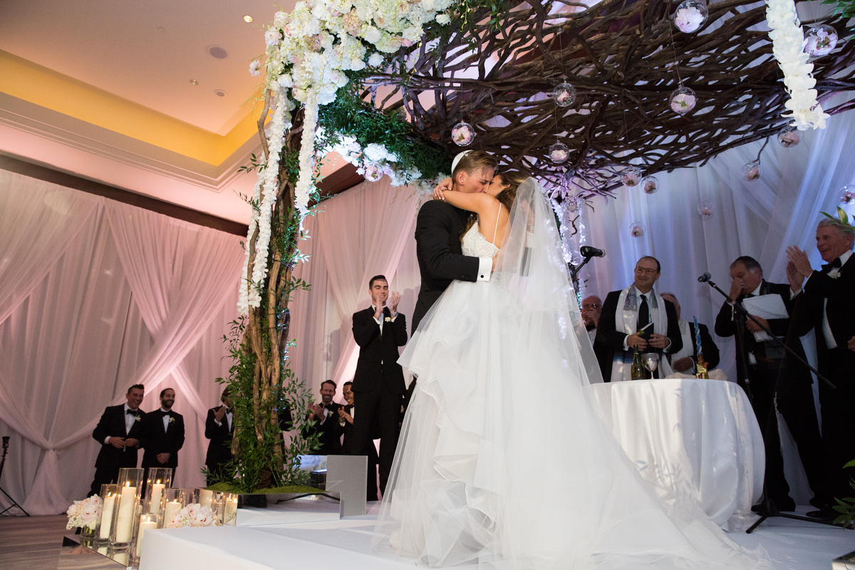 They exchanged vows underneath an amazing chuppah designed by Always Flowers. Just after Nick stepped on the glass you could feel the sense of excitement build – as the party was just getting started. The tables capes and floral decor in the ballroom at the Mandarin was dreamlike to photograph. The amazing team from Melissa Davis Designs and Always Flowers turned the room from a modern garden themed indoor ceremony to stunning reception.