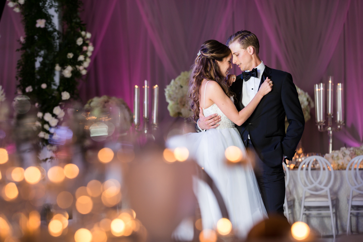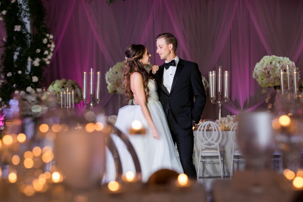 Have a ballroom reveal, just before the doors open, and take a few wedding portraits together in the gorgeous decor that you dreamt off! This is also a great time to practice your first dance! As the party winds down, find a nighttime location – like the city skyline for a quick evening portrait.