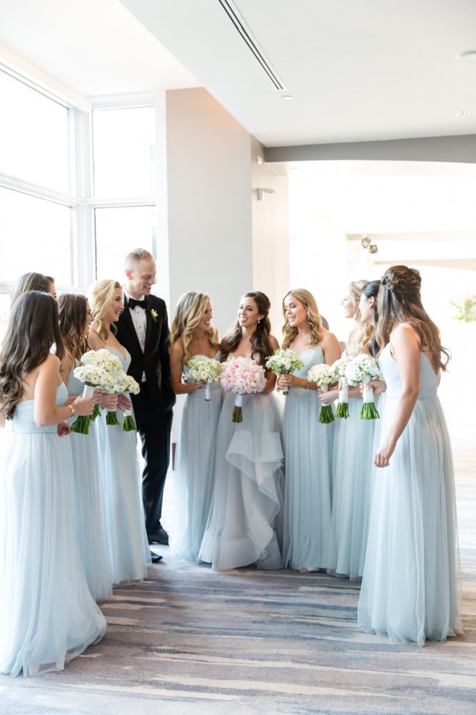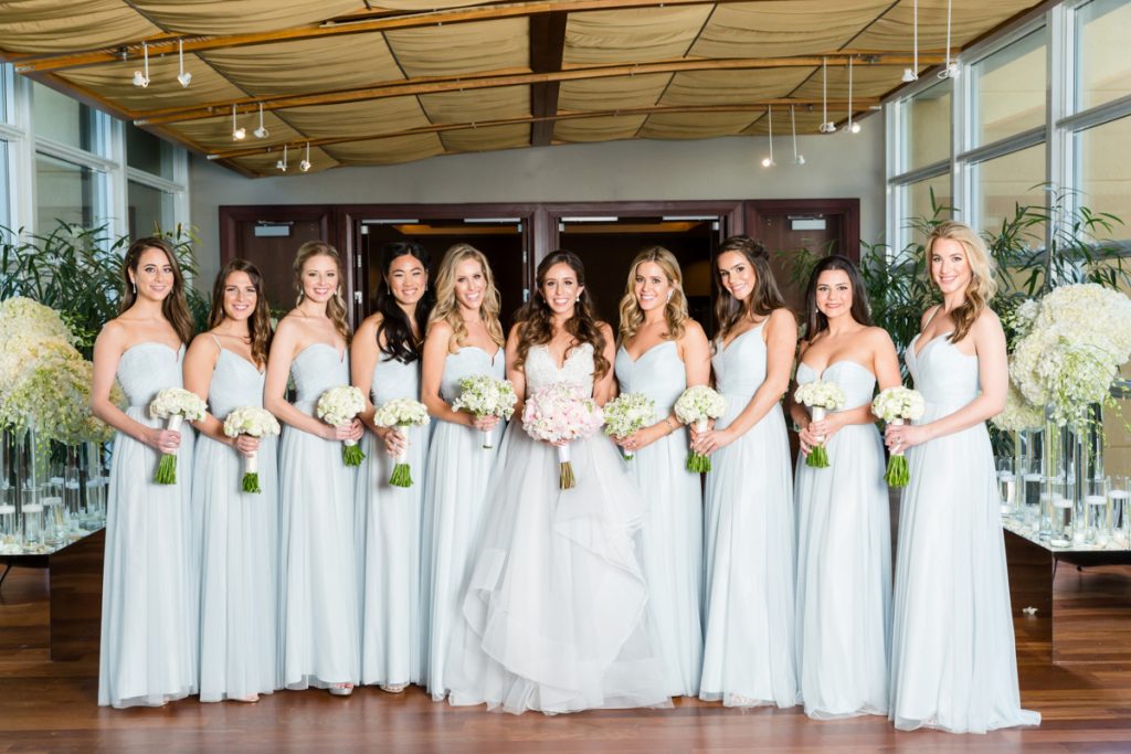 Schedule your bridal party to be dressed & ready about an hour before leaving for your ceremony – so you can have time for portraits with your besties. Having two wedding photographers is essential with this approach. Then, once you are married you take one large bridal party photo together – and they can go to cocktails!