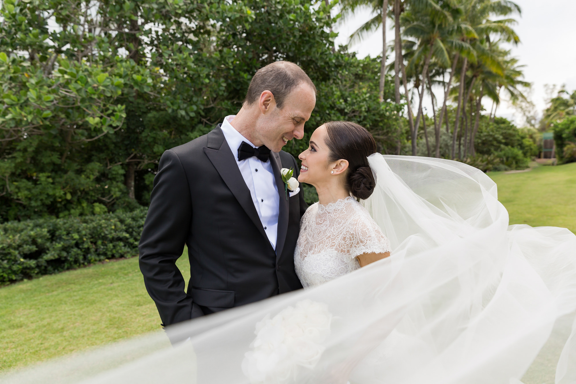 The Ritz-Carlton Key Biscayne has endless locations for wedding photography – the tropical elegance & vibrant colors are the perfect backdrop for a classic Miami wedding couple.